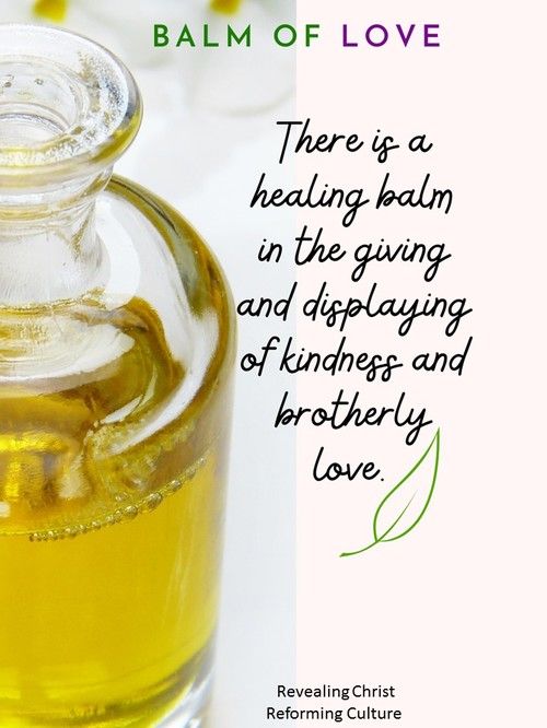 ultimate healing balm, Love, who is Jesus Christ. Let’s implement emulating the love and compassion of Christ through loving others with a heart of serving and caring and most importantly His ministry of healing the broken.